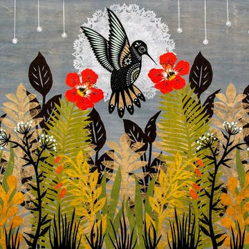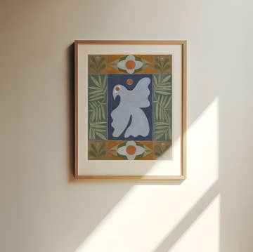 If you're a bird, I'm a bird... The Single Striped Bird print features an abstract ivory and black bird flying against a deep green background. All ALEX'S prints are giclee archival pigment fine art prints. Prints include a thin white border around the perimeter of the artwork. Prints are packaged in a clear sleeve with a cardboard backer and keepsake postcard.