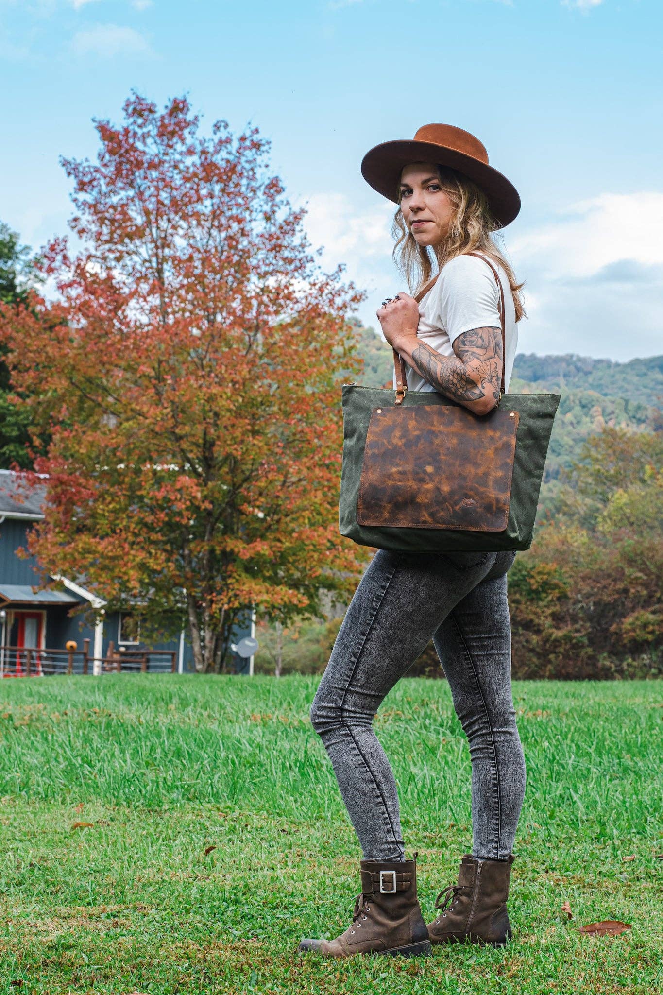 The Classic Waxed Canvas Bag | Tote Bag with Leather Pocket | Small