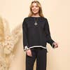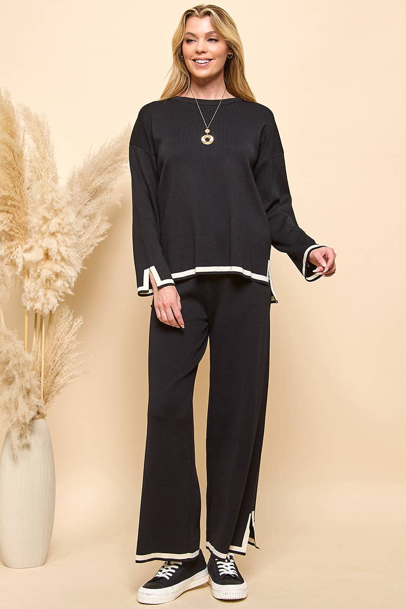 Knit solid top and pants casual set *51%Viscose, 21%Nylon, 28%polyester Made in China