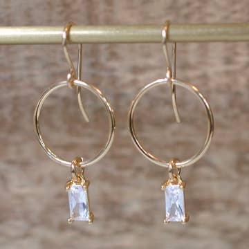 Faceted quartz is wrapped with 14k gold fill wire and suspended from a sterling silver hoop. Gold fill ear wire. Total length is 1.25". Also available in all sterling, all gold fill.