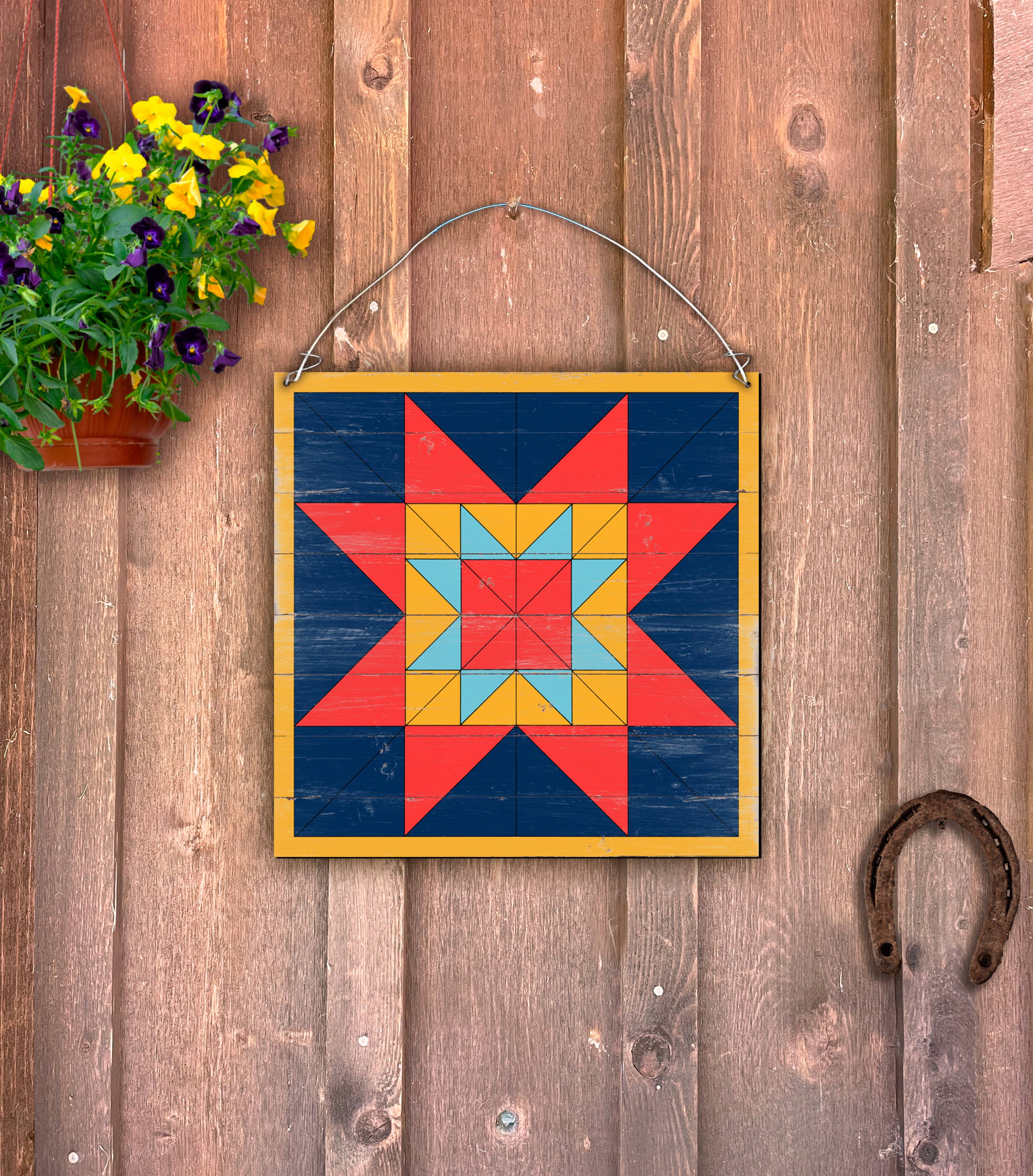 Add a rustic touch to any kitchen, front door, or patio! This door hanger is cut into the shape of a rooster, and painted with a checker pattern. If you have a unique design in mind, let us know! All of our door hangers are cut from 1/8" thick aluminum composite sign material, and printed with UV and weather-resistant ink to provide you with a full color image that prevents fading and scratching for years to come! (Ribbon not included) 20"x24"
