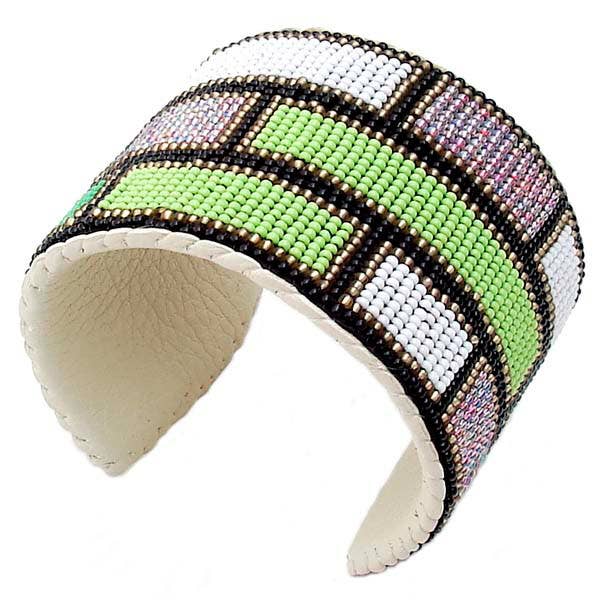 Small Green and White Ombre Leather Cuff