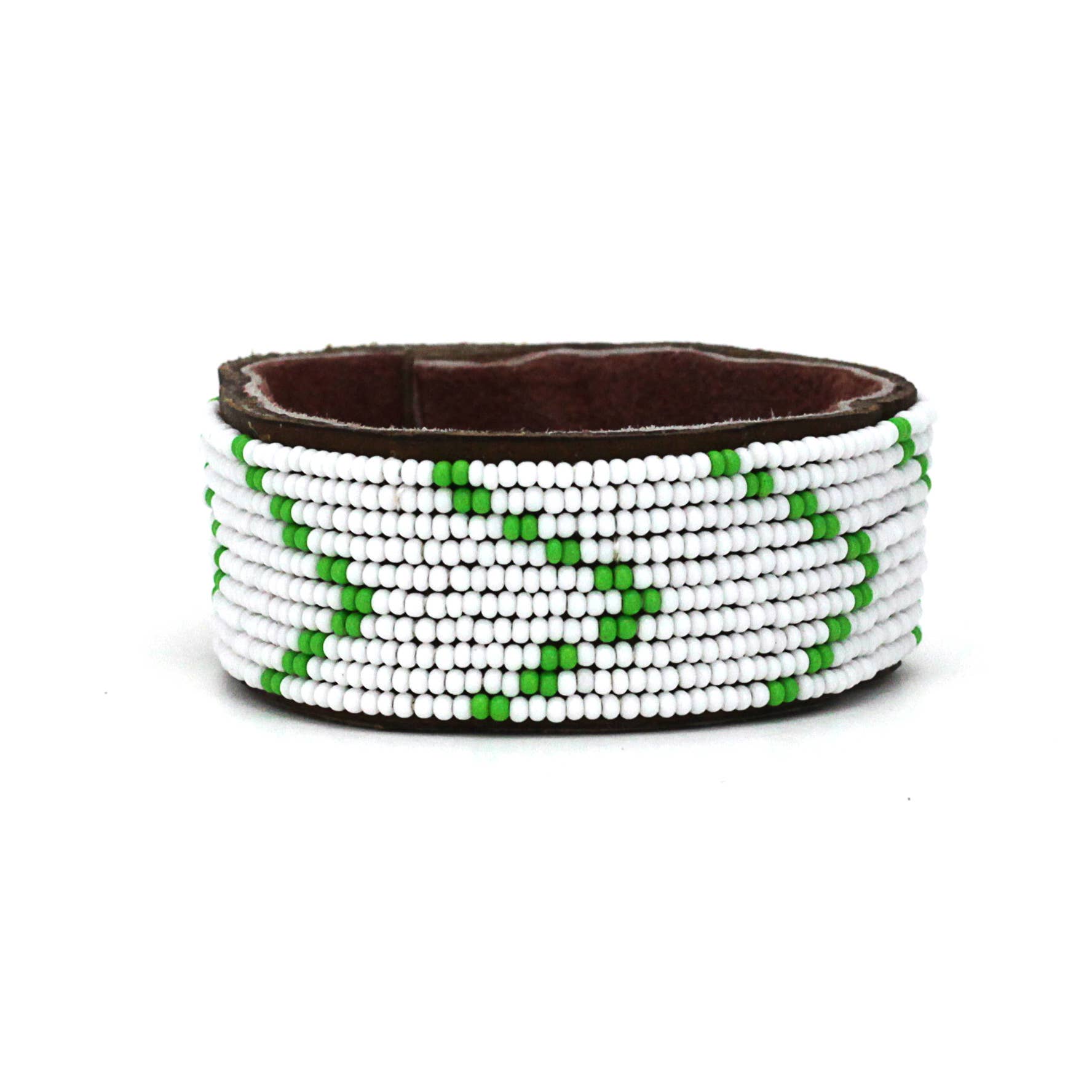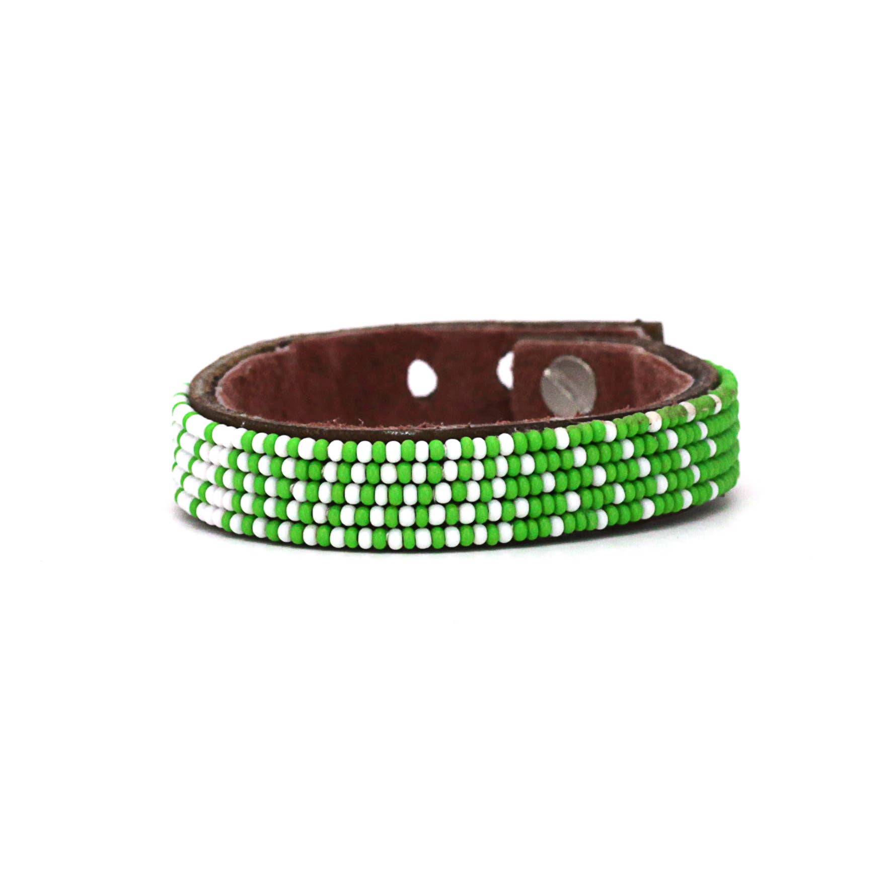 - 100% handmade by fairly paid artisans in our partner worker-owned co-op in Tanzania! - Crafted from free-range, natural leather and lined with soft suede. - Durable and adjustable. - Fastened by a button stud closure with three adjustable lengths. - Adjustable between 7"-8" in length - Three widths available in all styles: Small(.5 inch), medium (1 inch), large(1.5 inches). - Items are all handmade, so there is some variation in leather texture/color. Each cuff comes with a story card with artisan photos and information. A free wooden cuff rack is included with orders of 6 cuff collections or $400 of cuffs!