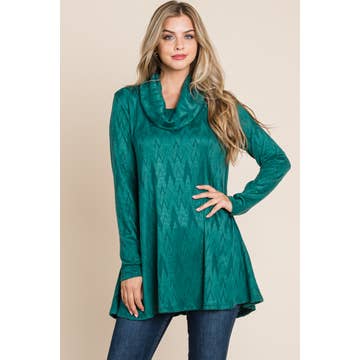 TL1817 COWL NECK KNIT TUNIC TOP