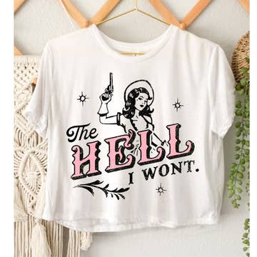 The Fit The Raising Hell baby rib crop is a women's cap sleeve cropped tee with a soft lightweight feel. Featuring 'Raising Hell' graphic printed across the chest. Runs small. Size up if you do not like a close to body fit. Model is wearing size S Content + Care 100% Cotton Wash Cold and Hang Dry