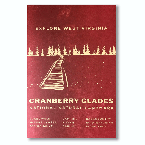 One of our most iconic prints, this was the first in our Explore West Virginia series. This minimal view of the New River Gorge in Fayetteville features one of West Virginia's most famous landmarks - now a National Park and Preserve! * 12" x 18" (standard frame size) * Brown paper * Hand carved linoleum, oil-based ink *Ink colors are hand mixed and each item is hand printed individually. The color and texture of each print is unique and may vary somewhat from the pictures.