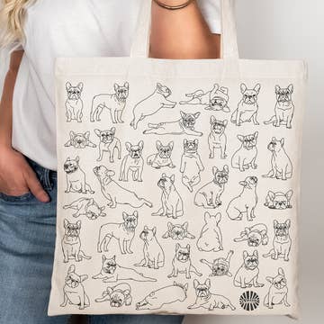 A bag full of dogs. Adorable. Screen printed 12" x 12" durable linen tote with gusset