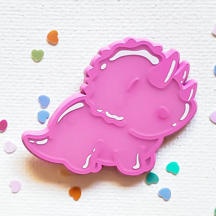 Mmmm, what a tasty addition to your bag, jacket, hat, or enamel pin collection! This kawaii rhino is inspired by the frosted animal cookies that many generations have enjoyed. This soft enamel pin is available as either a pink or white frosted cookie and is fastened with light pink heart clutches on two backing posts. Be sure to check out the other items in our Animal Cookie collection! ABOUT THIS PIN: -1.5 inches in width -Soft enamel pin with epoxy coating and dyed metal -Screenprinted sprinkle details -Two backing posts with pink heart rubber clutches -Atomik Cupcake Designs logo backstamp