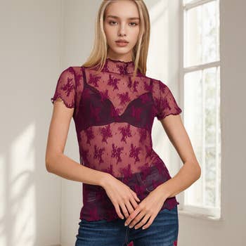 * Style No: TP9602 - Light-weight soft lace mesh fabric used - High neck design top with slim fit - Long sleeve - NO LINING (bralette is not including) - Model is 5' 8" 32-23-34 and wearing a Small Available By BEIGE : 02/13/2026 BLACK : 02/13/2026 BROWN : In Stock BURGUNDY : In Stock CARAMEL : In Stock CHARCOAL : In Stock CREAM : In Stock GREY : In Stock HUNTER GREEN : In Stock LAVENDER : In Stock LIGHT BLUE : In Stock LIGHT YELLOW : In Stock LIME GREEN : In Stock MINT GREEN : In Stock MUSTARD : In Stock NAVY : In Stock OFF WHITE : In Stock OLIVE : In Stock ORANGE : Out of Stock PEACH : 02/13/2026 PINK : 02/11/2026 PURPLE : In Stock RED : 02/11/2026 SAGE : In Stock TEAL : In Stock