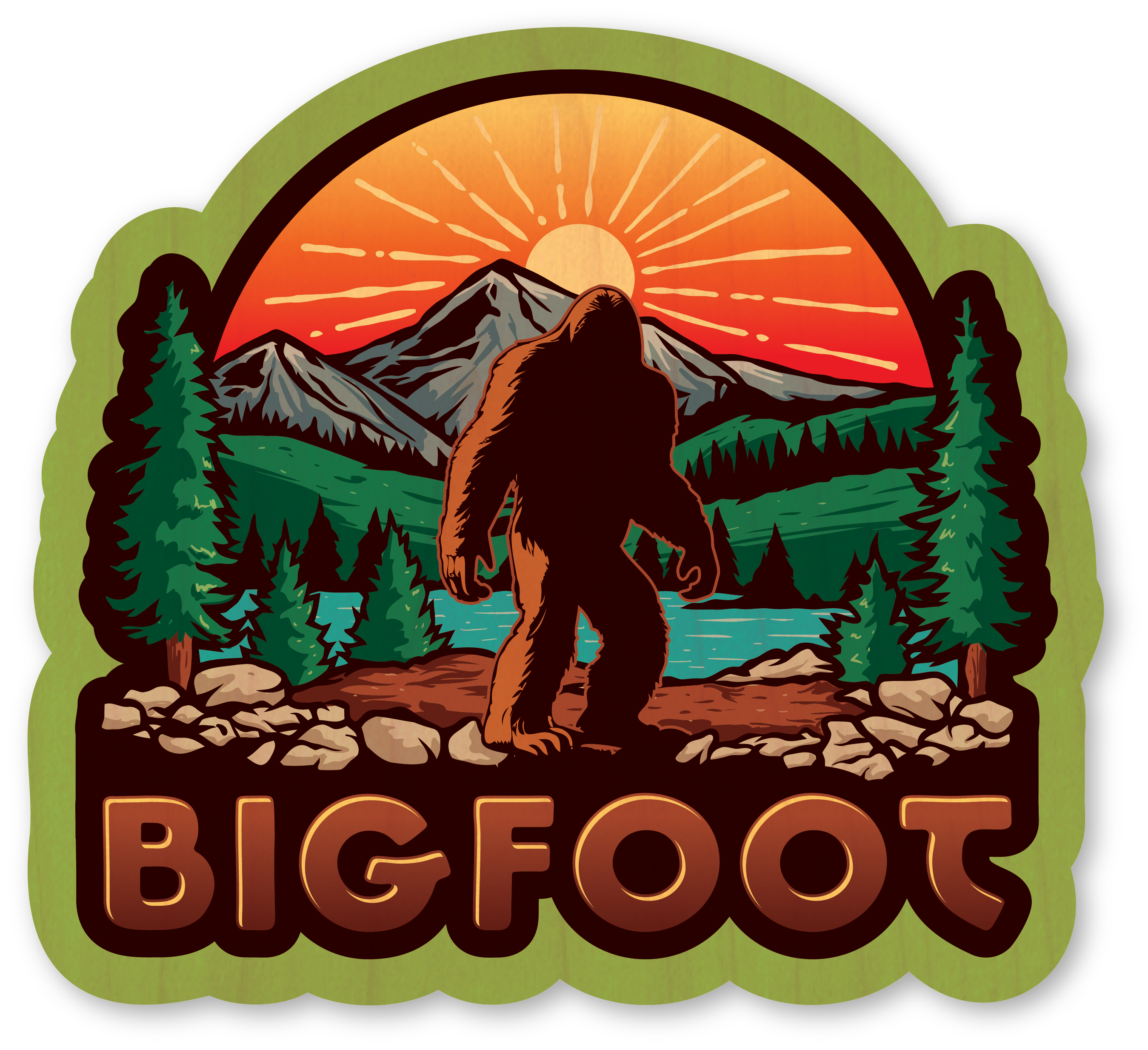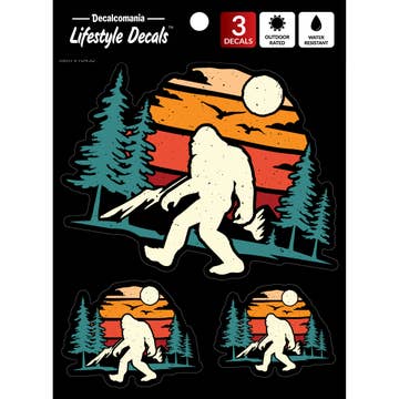 Bigfoot Sticker! These outdoor nature stickers are waterproof and dishwasher-safe. The best seller camping stickers will last for years on a water bottle or car window without fading or peeling. Our best selling vinyl stickers are barcoded on the back for easy inventorying. Also on the back of every hiking sticker, there's a sticker story printed there that lets the customer know what inspired the illustration and the artist who we collaborated with to illustrate it. People love our Sticker Art and the stories behind them. Depending on what you’re looking for like mountain stickers, stickers Northwest high selling stickers western stickers art stickers animal stickers Colorado stickers Texas stickers no minimum high sell through Idaho stickers NC stickers, Rocky Mountain stickers 14er stickers 14ers decal custom stickers kids stickers adventure stickers spring stickers summer stickers California stickers camp stickers coffee sticker car sticker wanderlust