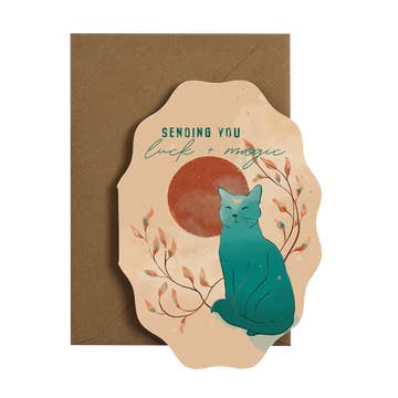 ‘Good luck with everything’ good luck card featuring adorable folk art-inspired illustrations of a scarab and stag beetle. Beetles in folklore are sacred and meant to bring good fortune, making them perfect inspiration for good luck cards. Send a loved one good fortune, adding your own handwritten message to the inside of the greeting card. The new Folksy collection of greeting cards from I Am Roxanne feature a distinctive oval die-cut shape with wavy edges, making them stand out on store shelves for their unique style. All greeting cards are packaged plastic-free. Folksy Collection Discover more good luck cards. * Good luck die-cut scalloped card * A6 Size: 150(W) x 105(H) mm * Blank Inside * 350gsm recycled GF Smith FSC card from sustainable sources * Paired with C6 100% recyclable kraft flecked envelope * Packaged naked with envelope nested inside. Packed in biodegradable bags on request. * Hand illustrated and Printed in the UK