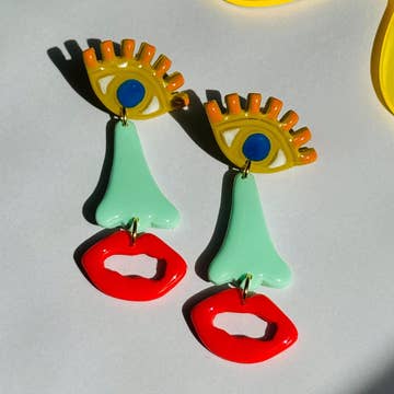 Size: 1 1/2" H x 1" W. This is a single earring with Sterling silver plated hook or Sterling Silver plated stud.k.