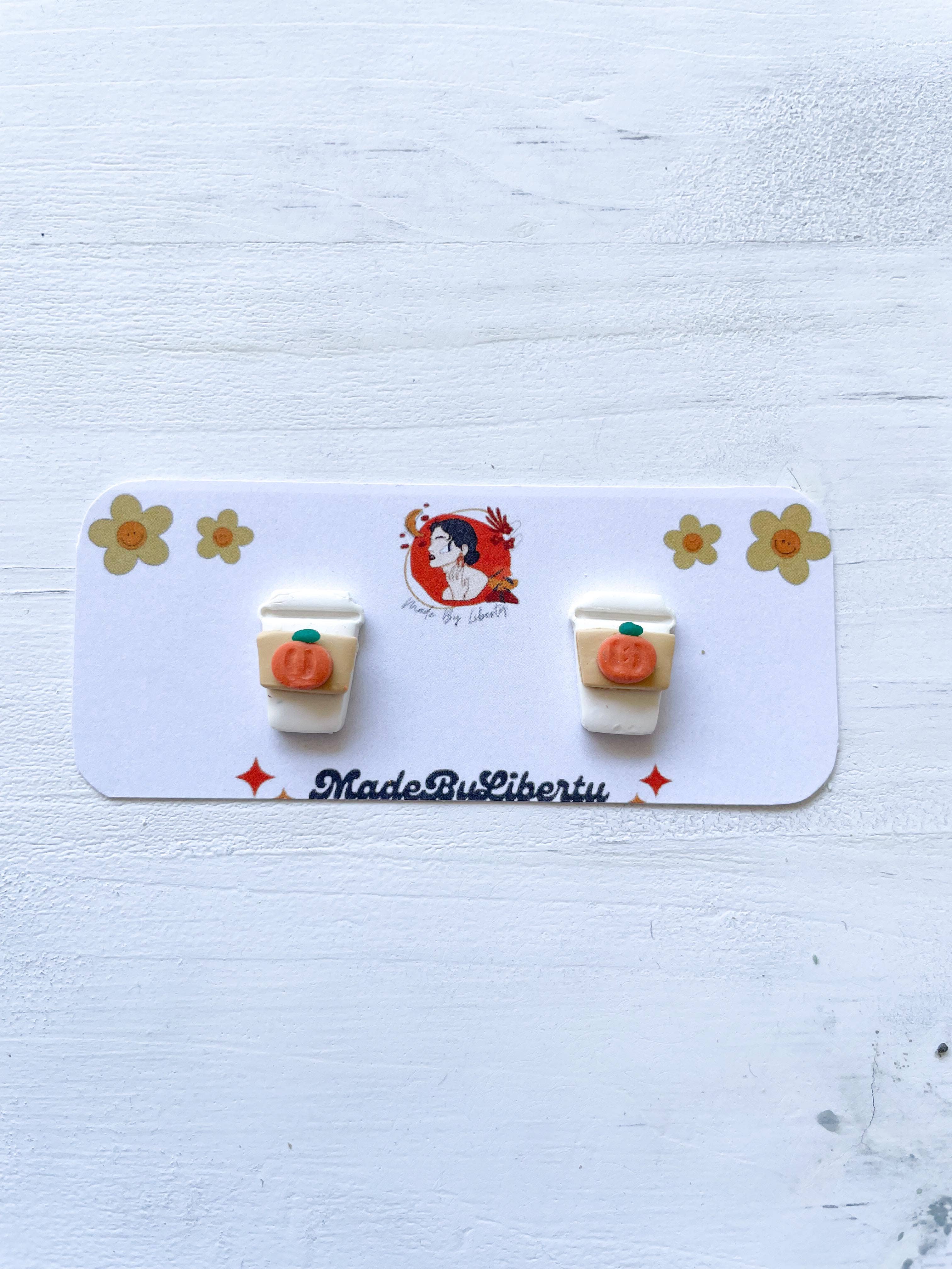 Pumpkin Spice Latte Stud Earrings | Fall Earrings | Coffee To Go Earrings | Gift for Fall | Pumpkin Spice Coffee Drink Jewelry Earrings | Polymer clay earrings. Super lightweight, stylish, and durable. Made with hypoallergenic stainless steel backs and brass or gold plated components. Please note that, due to lighting effects and individual monitor settings, color tones may show up a little differently on different computers. Because all our pieces are handcrafted, there may be minor variations from item to item. Polymer clay is very durable but not impossible to break. Feel free to clean the earrings with soap and water if necessary and store in a safe space when traveling with them. Please feel free to contact me with your questions!