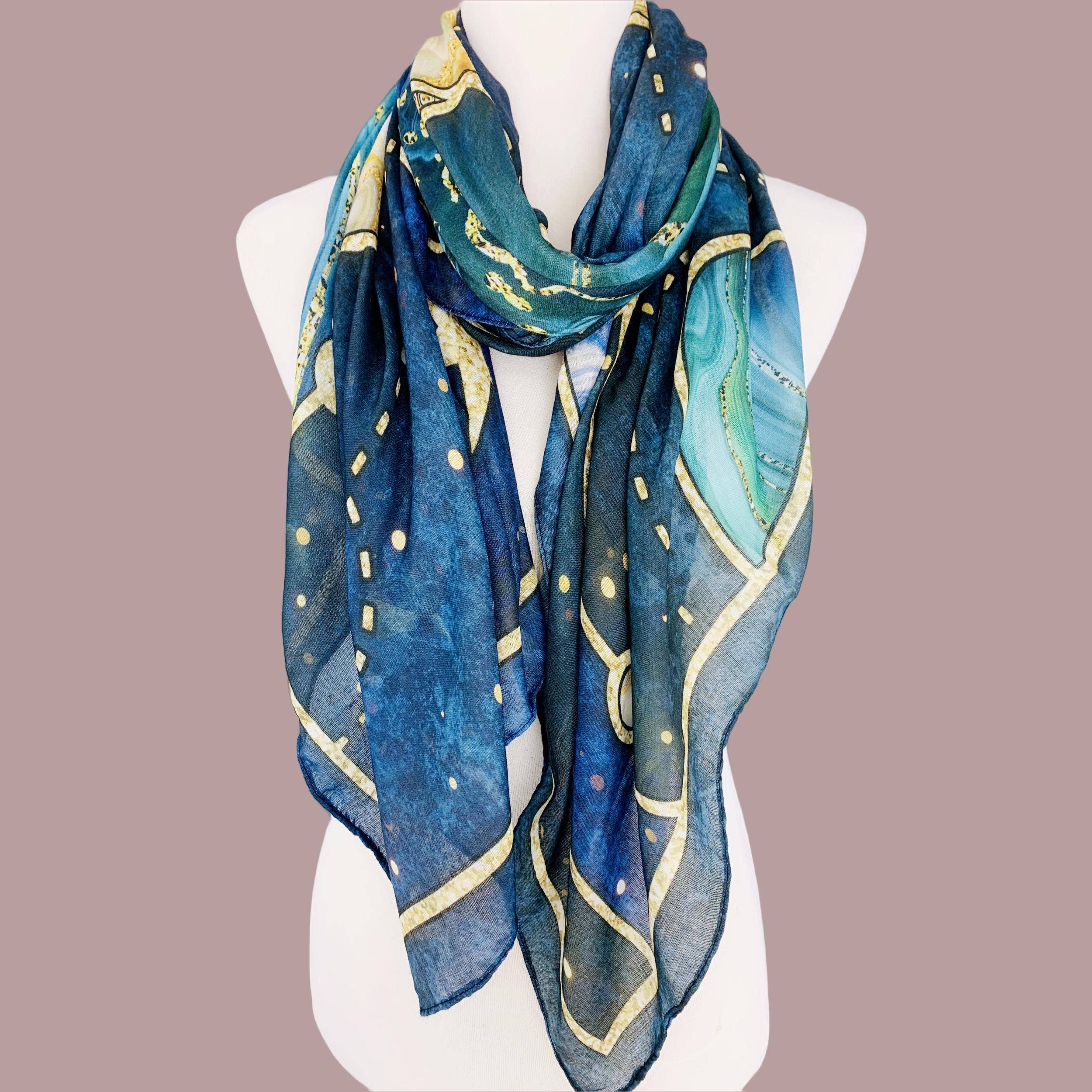 Delight your customers with this delicate eco scarf made from 100% recycled materials. The Midnight Garden Scarf can be worn as a bandana, hairpiece, or it can be used as an altar cloth to decorate sacred spaces. Channel nurturing night energy and be reminded of the magic within, featuring a design with moon phases, moths, crystals, flowers and plants. ✨Details: - Made from recycled poly chiffon derived from plastic bottles ♻️ - Size: 26" x 26" - Fabric weight: 70 grams