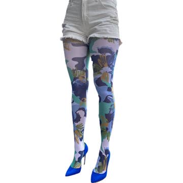 Semi- opaque tights in denim blue, neon green and brown. Legs are different color stories. Each pair is unique and color and print will vary slightly. Handmade with toxic free dye in house by us, with love! *Comes in a biodegradable /compostable clear pouch with brand sticker and size sticker. 85% nylon, 15% spandex. Choose from regular footed, or stirrup tights. If you choose stirrup tights these are made from our regular footed tights and sewn after the dying proceeds. Samples images are in last slide for silhouette reference and fit. If you have a thread preference like matching or funky contrast color, just add it in the notes section at checkout.
