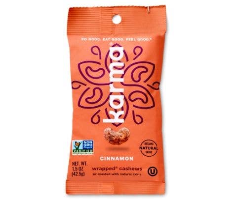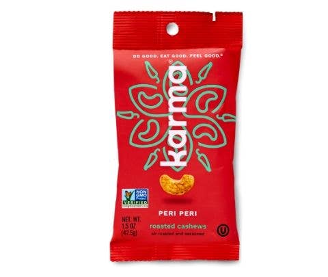 Air-roasted without oil. Supremely creamy. Unbelievably delicious. Karma takes cashews to a whole new level of being. With real toasted coconut and pure cane sugar, the taste is truly amazing. Choose Roasted: - Air roasted to keep them minimally processed. - Good source of 6 essential minerals. - Non-GMO Project Verified, gluten-free, vegan, Kosher. Roasted cashews. 10x7x6.