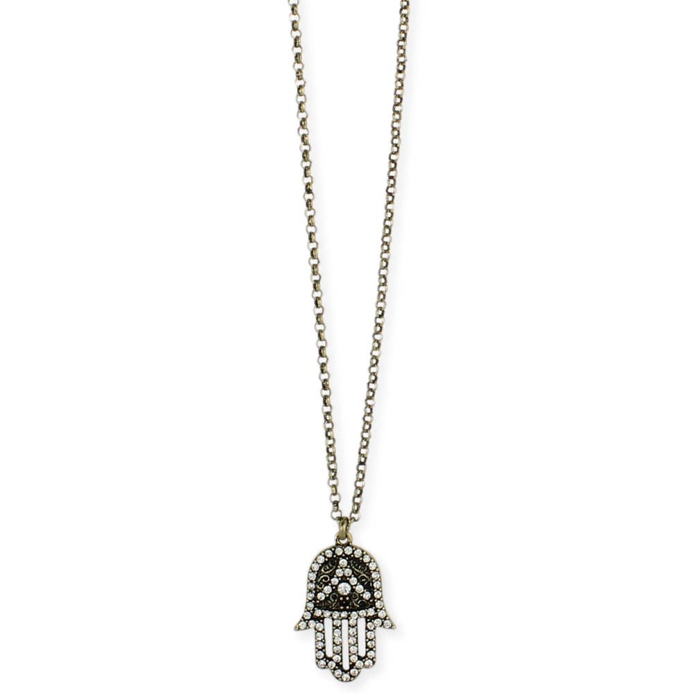 Wearing this Seeka Vibrant Hamsa Necklace to Protect from the Evil Eye is like wearing a miniature artwork. The piece is truly unique with the intricate design hand-painted and set within a very light stainless steel frame. Austrian crystals, beads and a variety of other materials are delicately assembled and set in artists' resin resulting in a beautifully finished and durable piece. Pendant measures 0.8 by 1.1 in, Chain is 16 Inches long with 4 Inch extende