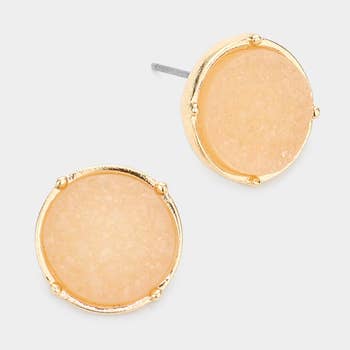 Druzy Stud Earrings (Handmade 8mm) - Perfectly Peach