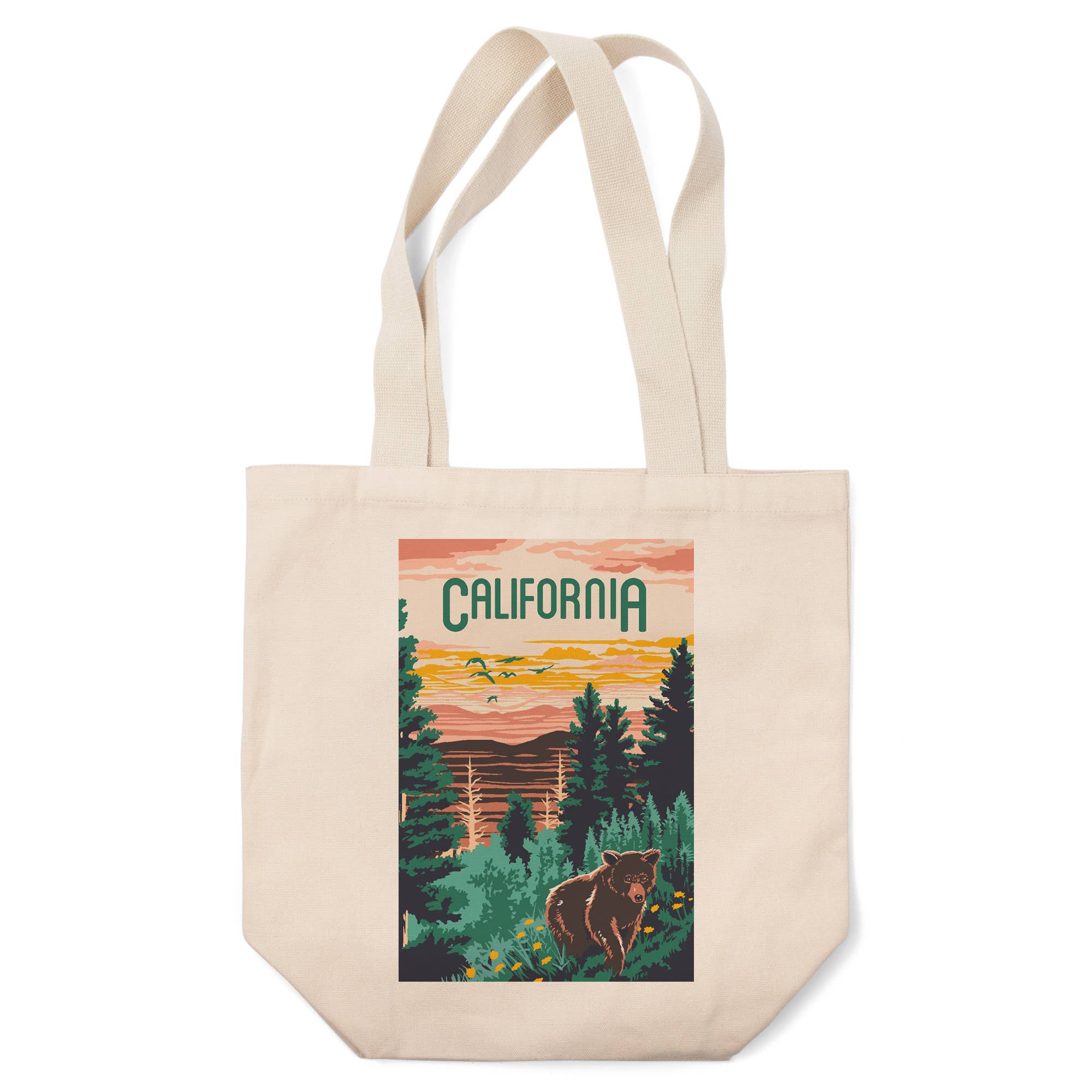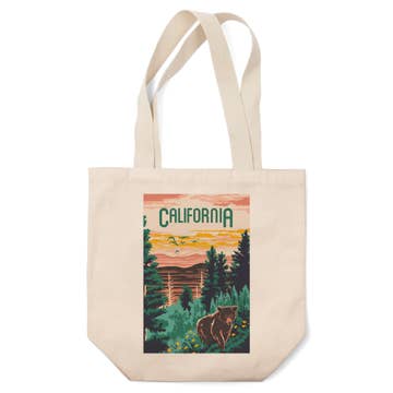 NEW LOWER PRICE! Design inspired by vintage artwork from the 1913 sheet music cover of California's state song, "I Love You California." 100% natural cotton canvas tote bag with gusset. 14" x 10.5" x 5 " with 22" handle. Printed in California. Spot Clean (MSRP $18.95)