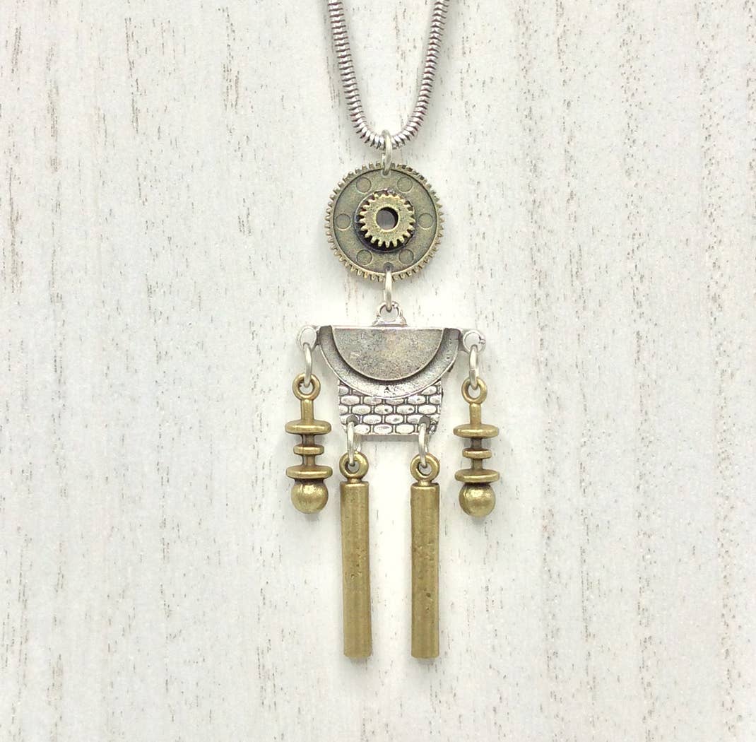 silver & brass plated robot on 28" silver plated ball chain