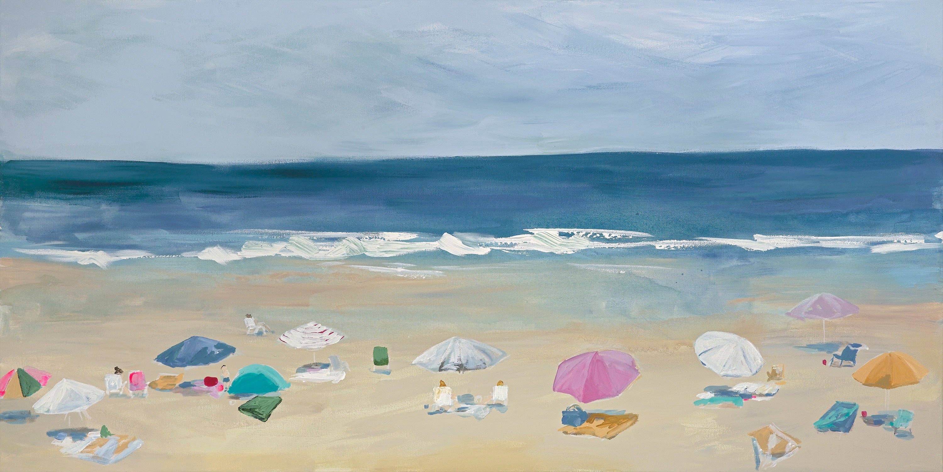 This Beach Umbrellas Art Print is made in my New England studio. I print on heavyweight cold press paper using archival inks and sign the bottom corner of every image. Dimensions listed under sizes refer to the paper size and work with many standard-sized frames. There is a narrow white border all around the outside edge of the artwork. I pack all prints in waterproof plastic and ship them in sturdy cardboard packaging with a tracking number.