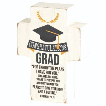 Congrats on your graduation tabletop glass plaque this clear glass tabletop plaque is an inspiring graduation gift with its meaningful poem. Glass is 4 5/8" x 10 1/8". Includes silver metal peg stand. Text of poem: today you're graduating it's time for some goodbyes but one will never leave you the one who makes you wise. Though times are ever changing some truths are meant to last; so build a solid future on wisdom from the past. As you begin your journey before you even start be sure to take God's wisdom and keep him in your heart. And with his loving guidance your choices will be smart; so graduate go follow the dreams within your heart. Verse by Alda Maria copyright Dicksons