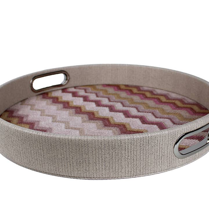 Wholesale Set of 6 oval synthetic leather zigzag grey blue pink placemat