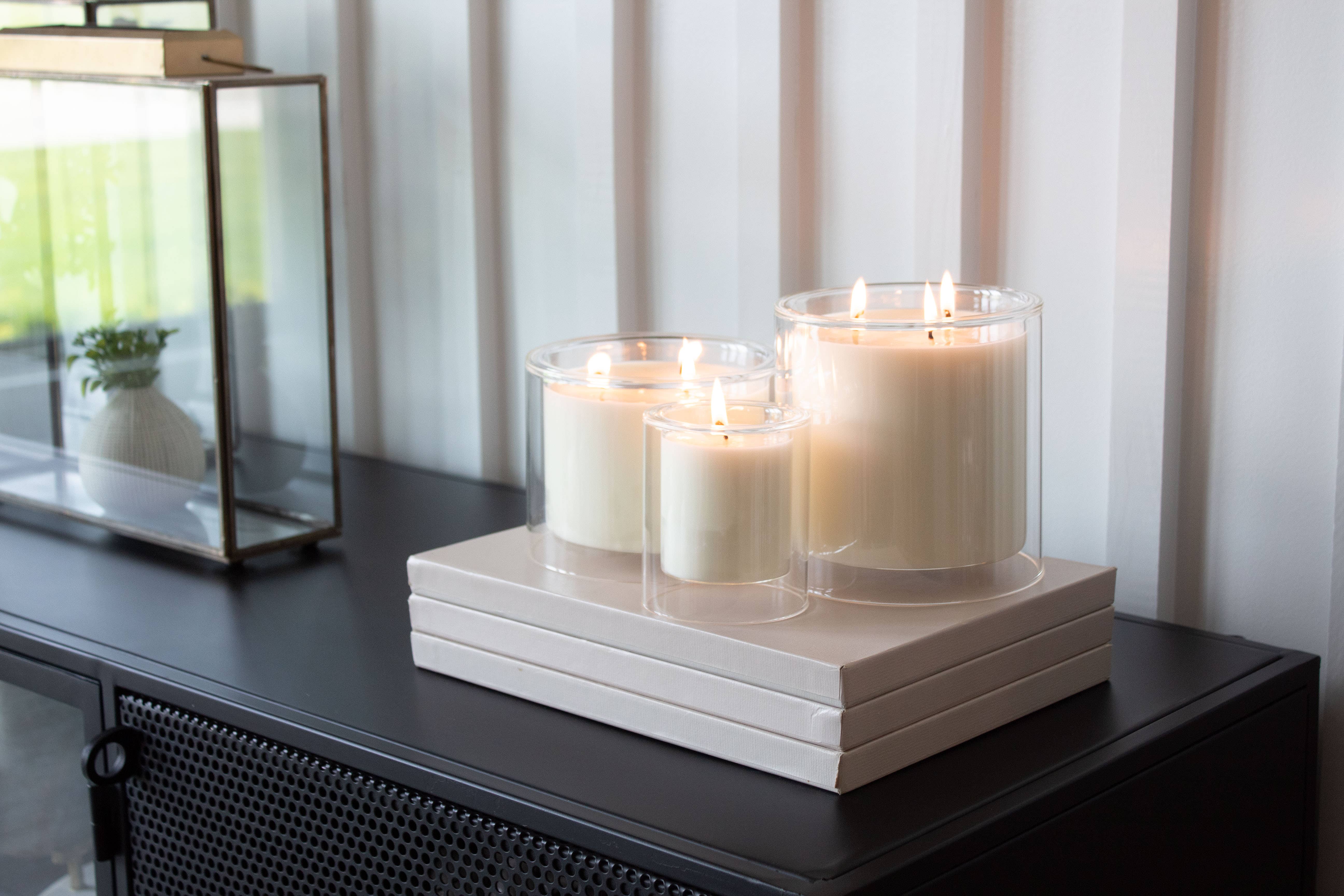 Mysa (pronounced as "MEE-sah) is a Swedish term that translates to "cozy" or "to be cozy" in English. It encompasses a feeling of comfort, relaxation, and contentment. The Mysa Collection consists of a double-walled clear glass luxury soy candle. Each Mysa candle is packaged in beautiful, tube packaging, making it a great gift on-the-go, no gift bag needed! Available in three different sizes- Petite (9 oz.), Lagom (32 oz.), and Grand (42 oz.) Petite - 9 oz (1 wick) - 3.5" W x 4" H Lagom - 32 oz (3 wicks) - 5.85" W x 4.55" H Grand - 42 oz (3 wicks) - 5.85" W x 6" H Simplicity is a beautiful thing. Our candles are made with 100% pure soy wax, premium fragrance oils and cotton-braided wicks. 100% Pure Soy Wax | Premium Fragrance Oils | Three Lead-free Cotton Wicks | 32 oz. | 110 hours burn time