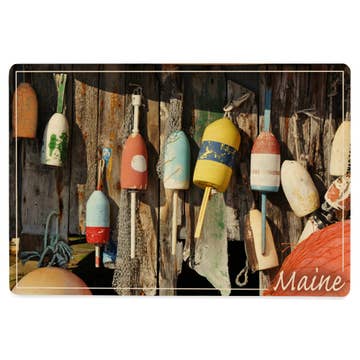 This Maine-themed postcard features an ode to the iconic Maine lobsters. It features an illustrated bright orange lobster originally cut from paper set against a sea-foam colored background. A blue banner reads Maine above the lobster. The back of each postcard features 3 address lines and the silhouette of the state's shape to mark the spot for stamp placement in black and white. These postcards are professionally printed in full color and measure 4 by 6 inches each. The front features UV gloss coating, while the back is matte and the perfect surface for writing.