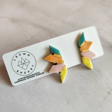 This pair of hard enamel earrings are petite and classy enough for work, while still keeping things fun! Details: - 0.45" on the longest side - Hard enamel - Polished 22k gold plated metal - Ships as a pair on card - Packaged inside a protective cello sleeve ------------------------------------------------------------ Since our stainless steel posts are made by a third party, we can not guarantee that our earrings are 100% nickel-free. If you are aware of a severe nickel allergy, these novelty earrings may not be a good fit for you.