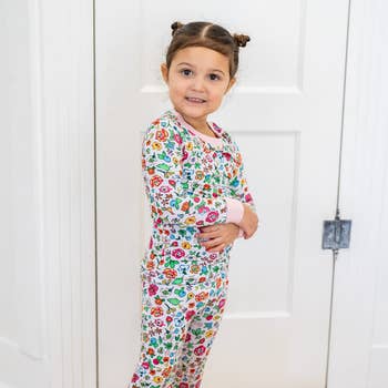 Get The Look Upgrade your toddler's sleepwear with our super soft bamboo two-piece pajama set! Our Cape Cod Hydrangea flower pajama set is inspired by the beautiful purple, pink and blue hydrangea flowers in Cape Cod, Nantucket and Martha's Vineyard. We love the pink, purple and blue flowers with lush green leaves. Details - The softest, stretchiest Basically Soho bamboo viscose fabric, your toddler won't want to take these off - No buttons or interior tags for ultimate comfort - Long sleeve top and matching pant - Signature Basically Soho Cape Cod Collection design, the same as our zippered romper for matching sibling moments Fabric + Care - 95% viscose from bamboo, 5% spandex - Machine washable - If in between sizes, we recommend sizing up, as our sleepwear can run small.