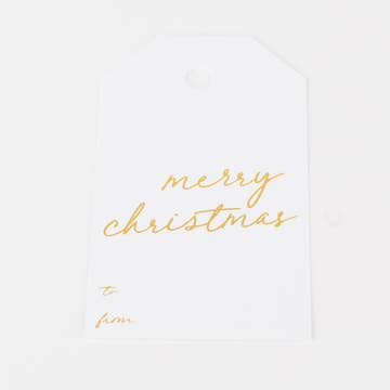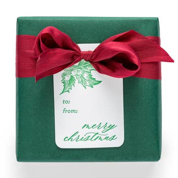 Elegant and versatile, these “Happy Holidays To You” silver foil gift tags add a polished finishing touch to holiday gifts. The minimalist design and shimmering foil make them an easy add-on item for boutiques during the holiday season. • Silver foil stamped gift tags • Black, gray, or white paper • Large die-cut design • Includes silver elastic ties • Size: 3 × 4 inches, die-cut • Blank on the back • Set of 10 • Packaged in a clear cellophane bag • Made in USA