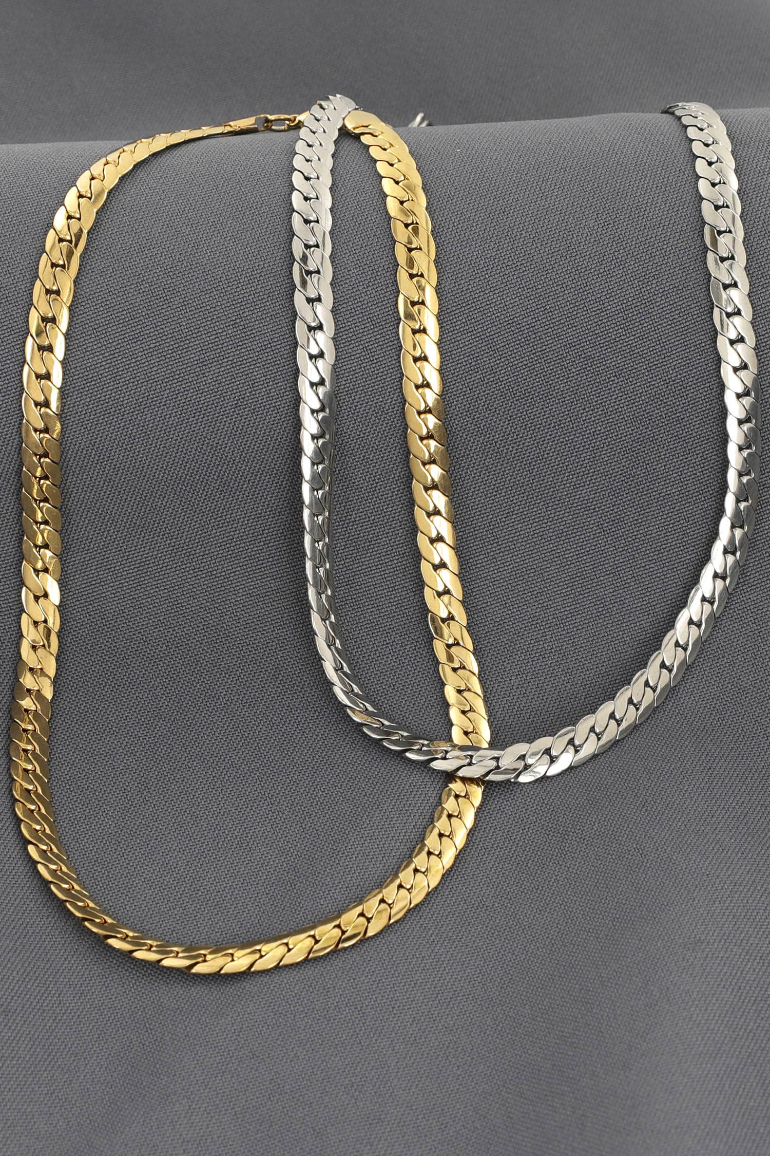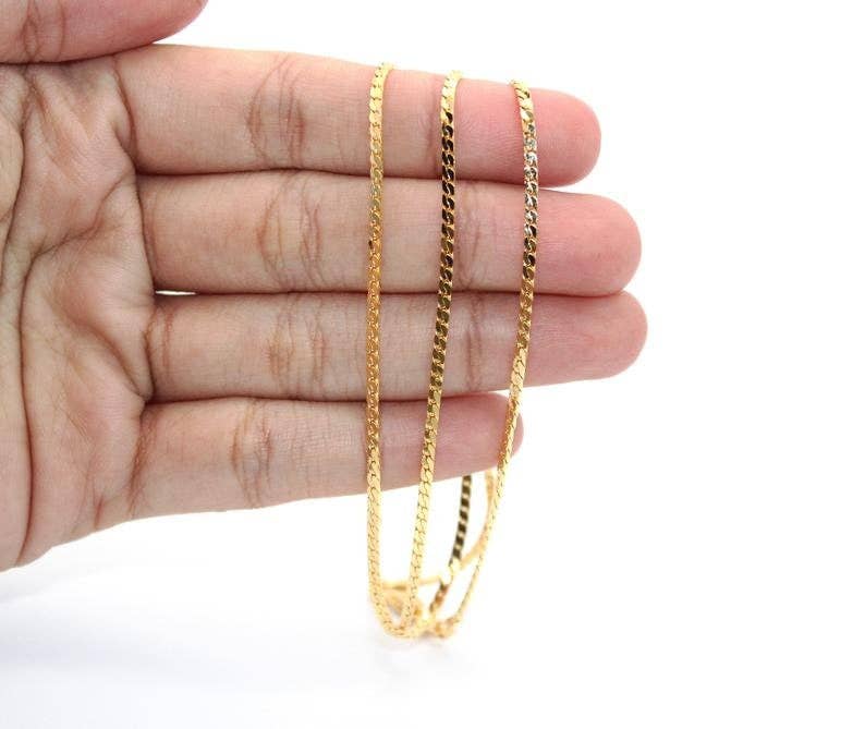 Mens gold chain necklace. Stainless steel gold plated. Length: 60cm, width .05 cm. Sold per piece.
