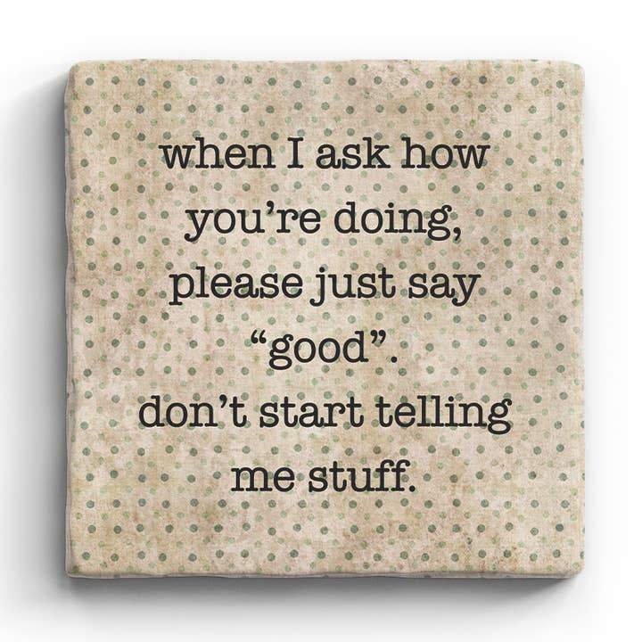 Our bestselling Polka Spots collection will bring laughter into your store with hundreds of hilarious sayings for every type of humor. • 4" x 4" tumbled marble coaster • Durable cork backing • Permanently printed using our proprietary method • Won't stain or harbor mold • Made in the USA