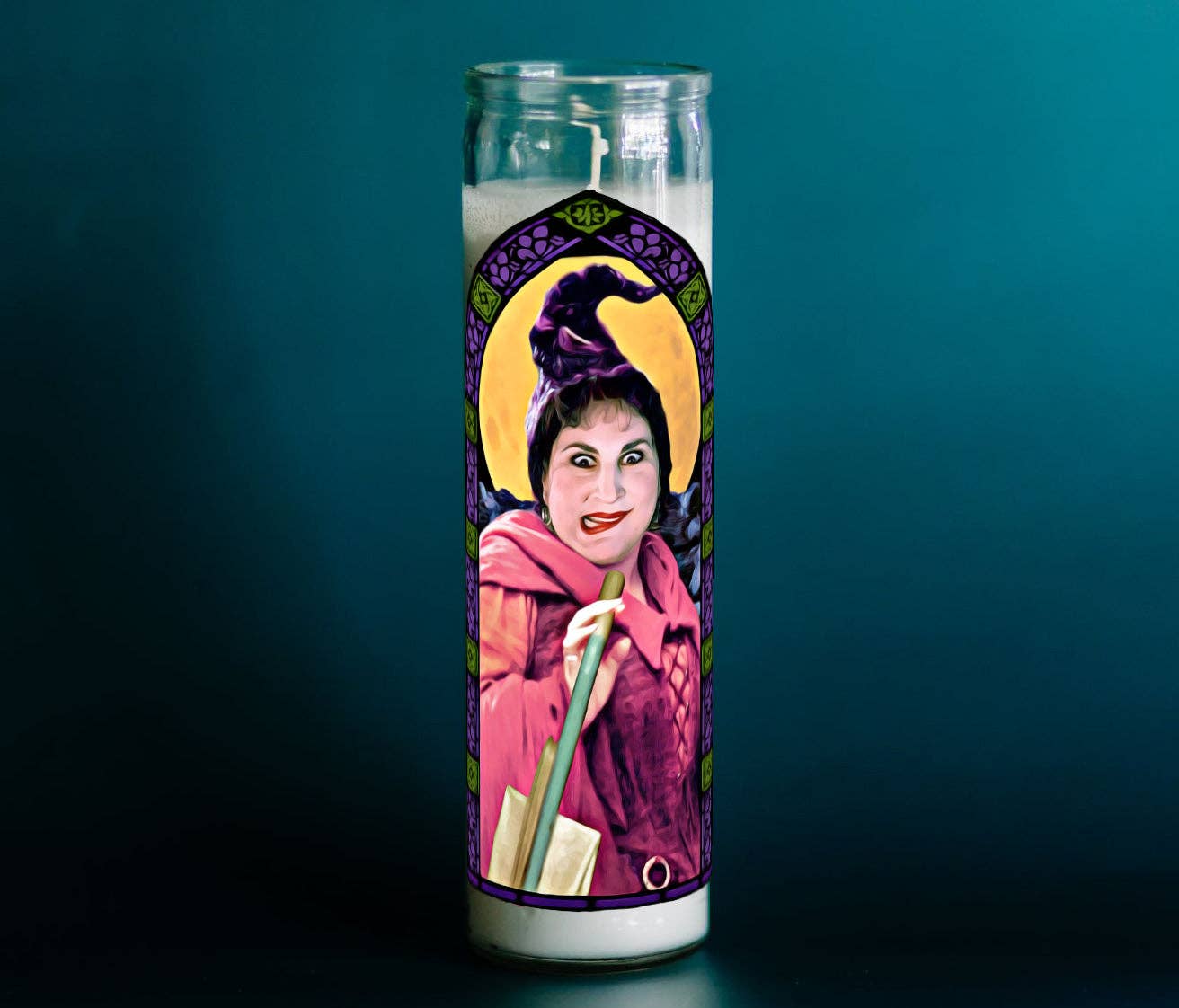 This is the way. Digitally illustrated parody art prayer candle inspired by Mandalorian and Baby Yoda. 8" tall unscented glass candle that burns for 100 hours. Designs are printed on high-quality weather and fade-proof vinyl. Candle colors may vary slightly. It's easy being green! We use recycled and eco-friendly packing materials whenever possible. Please help by reusing your candle packaging however you can! Keep your altar safe! Always trim your candle wicks to 1/4" before burning and never leave unattended.