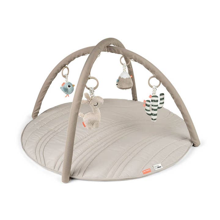 • Sensory surprises to keep your little one engaged • Building coordination and strength • Free standing and easy to adjust • Three hanging toys included Material: Arch: Fabric: 100% polyester. Filling: EVA foam, quartz sandbags, polyester fibres. Toys: Fabric: 100% polyester. Filling: 100% polyester fibres. Care: Toys: see items separately. Size: W 45-80 cm x H 40-48 x 22 cm. Our award-winning activity gym comes in a fresh green Tiny farm edition, filled with farmyard fun and sensory surprises for your little one. Let curious fingers explore their own reflection, discover crinkle sounds, feel different textures, and grasp playful shapes. The activity gym is free-standing, flexible, and easy to adjust in both height and width. It's perfect for following your baby’s development and help them reach, grasp, and kick, all while supporting important early milestones. The baby gym includes three charming toys: our Deer friend Dotti, a bee, and a clover. Each comes with its own sensory feature, from soft bells and crinkles to a baby-safe mirror, keeping curious little hands and eyes entertained. With 17 toy link placements, you can move the toys around to keep things fresh and engaging. This green activity gym encourages coordination, builds strength, and supports your baby’s early sensory exploration, and can be used on a play mat, over a cozy nest, or wherever your baby loves to play.