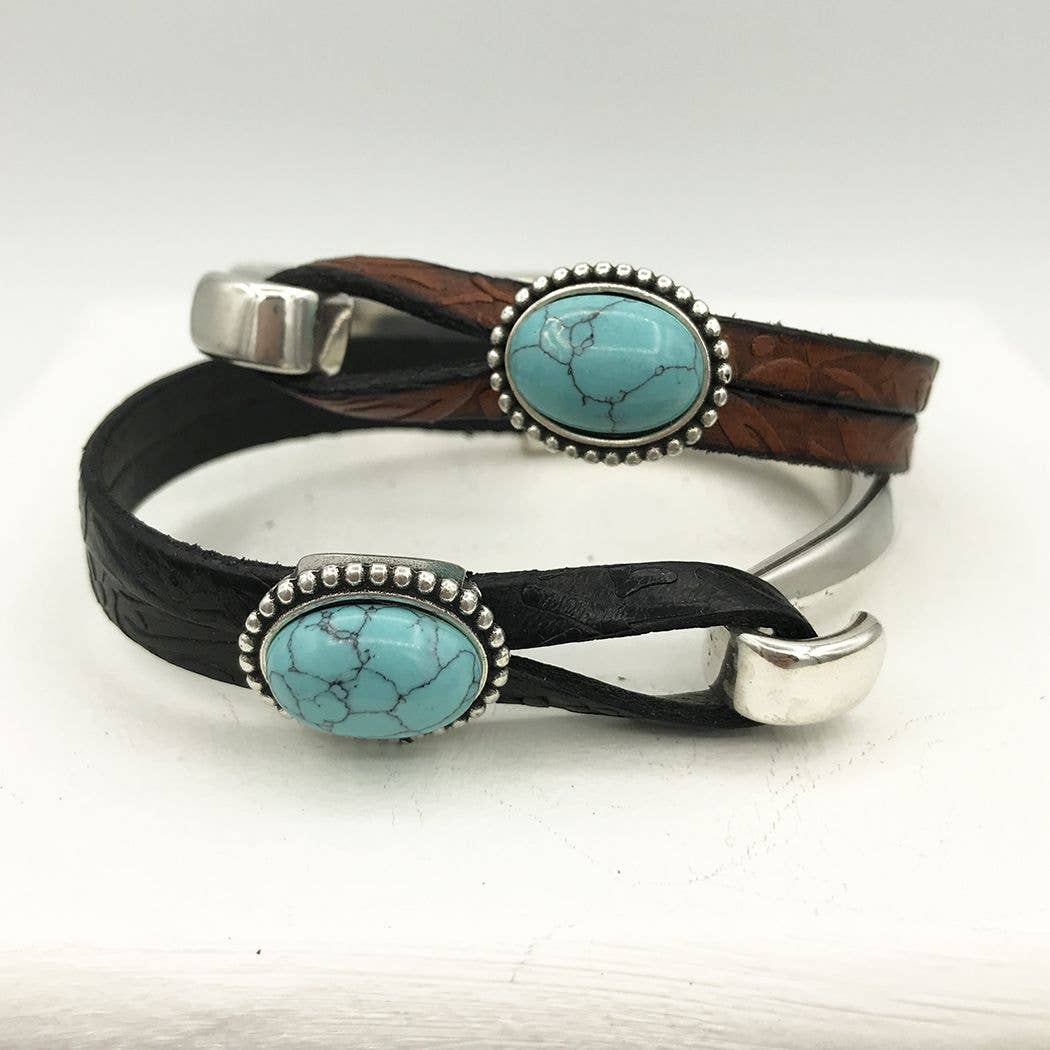 SKU: 006y Made in United States Color: Blue, Green, and Multi-Colored Is Set: Individual Material: Leather and Stone Stone Type: Agate and Turquoise Style: Bohemian and Western Product Language: English Weight: 113.4 g (4 oz) UPC: 754105040880