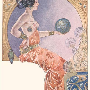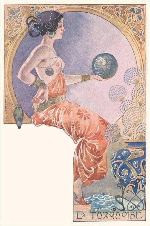 Art Nouveau Woman with Gazelle