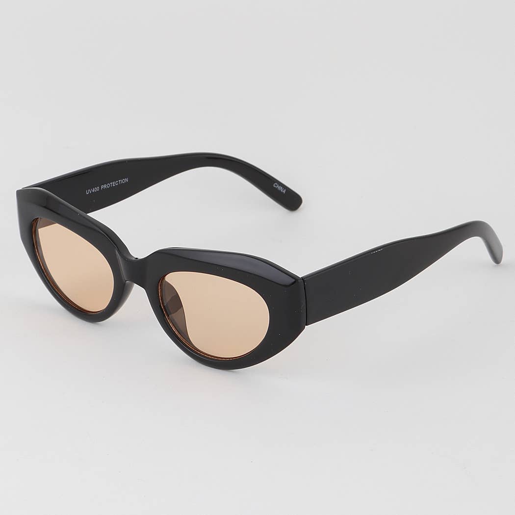 90s Curved Cat Eye Sunglass Retro with Glass Lens - Flo