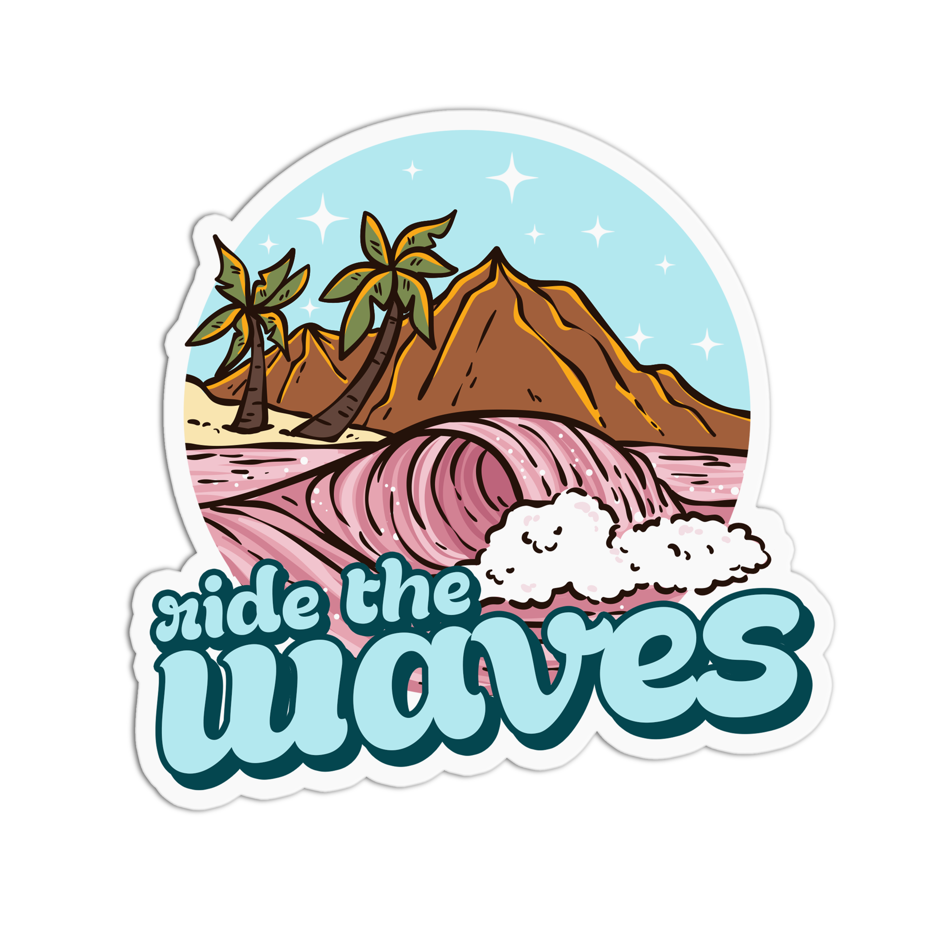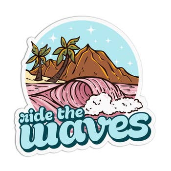 To "ride the wave" is to sit with feelings of discomfort until they pass. This is a lesson that is useful for anyone, but people in treatment for mental illnesses often learn about this skill. Uncomfortable emotions and sensations are going to come and go, but the idea is to ride the wave and see it through to the end, especially without acting on any urges that may hurt you long-term. This is a 2.31" by 2.25" premium vinyl sticker. Our stickers feature a special laminate that protects them from exposure to wind, rain, and sunlight. They're even dishwasher-safe!