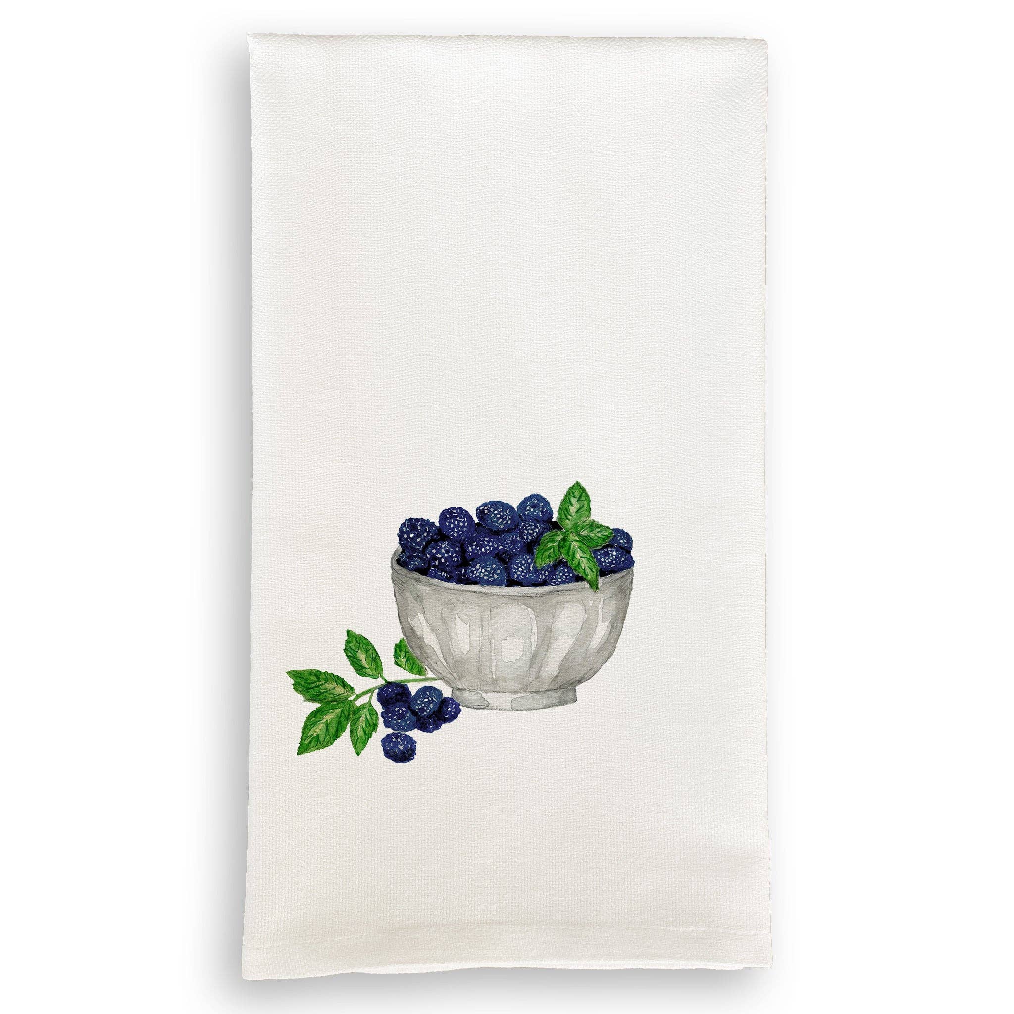 Blueberry Kitchen Towel, Handprinted Tea Towel