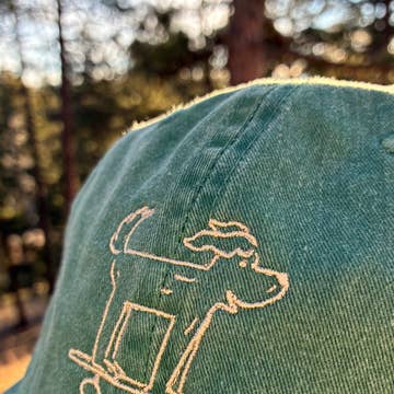 Wear some fun & joy on your head with this rad dog rolling along, lovingly embroidered on a classic dad hat. Chances are you'll bring some little joys to someone else's day, too, so it's a win-win. Embroidered with love in our print shop in Evergreen, CO. 100% garment-washed cotton twill