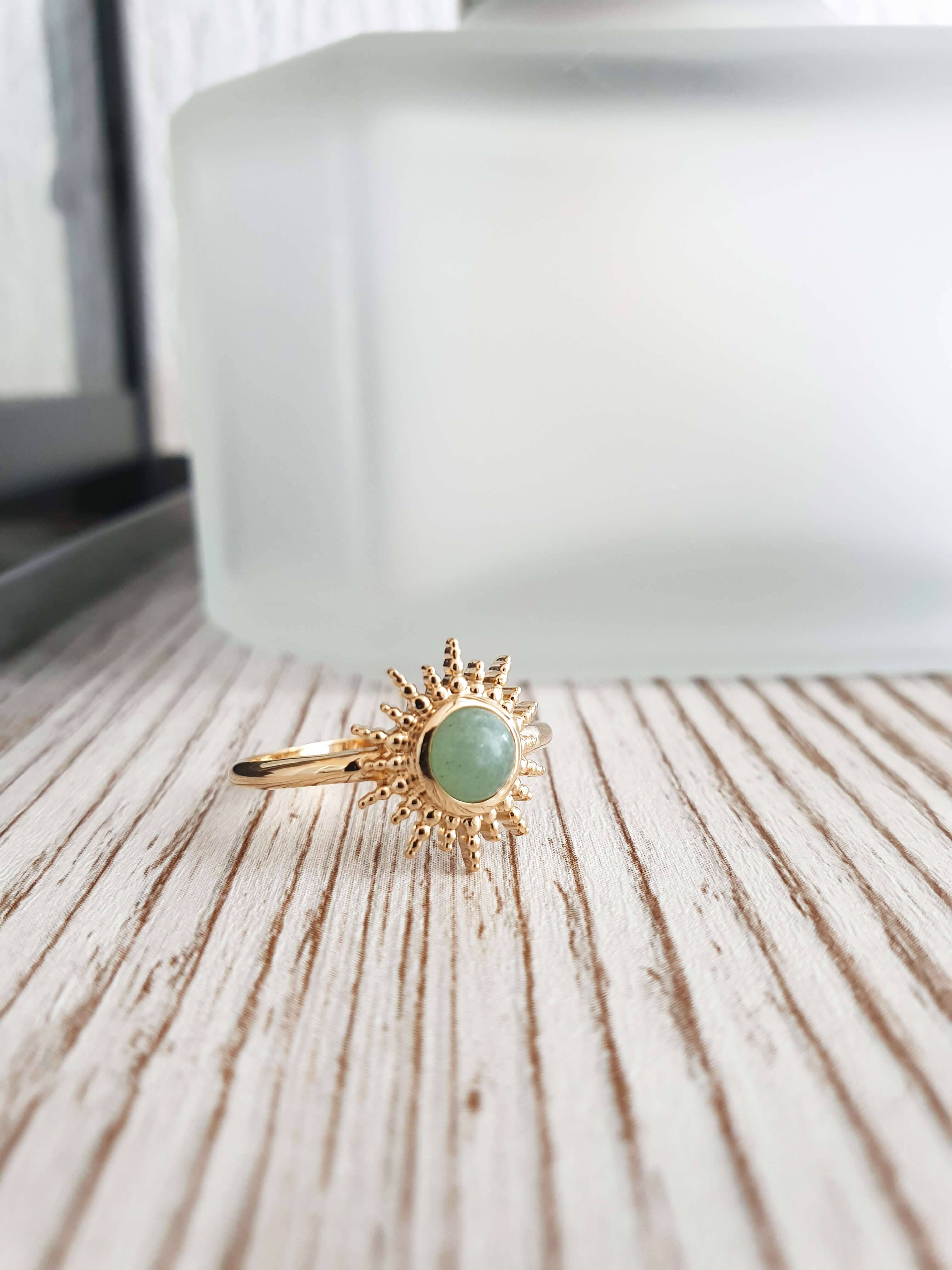 Gold plated “Sun” bracelet with aventurine Length: 18cm adjustable to 16cm Green aventurine is used in dermatological products to sanitize and clean acne-prone and irritated skin. It promotes growth.