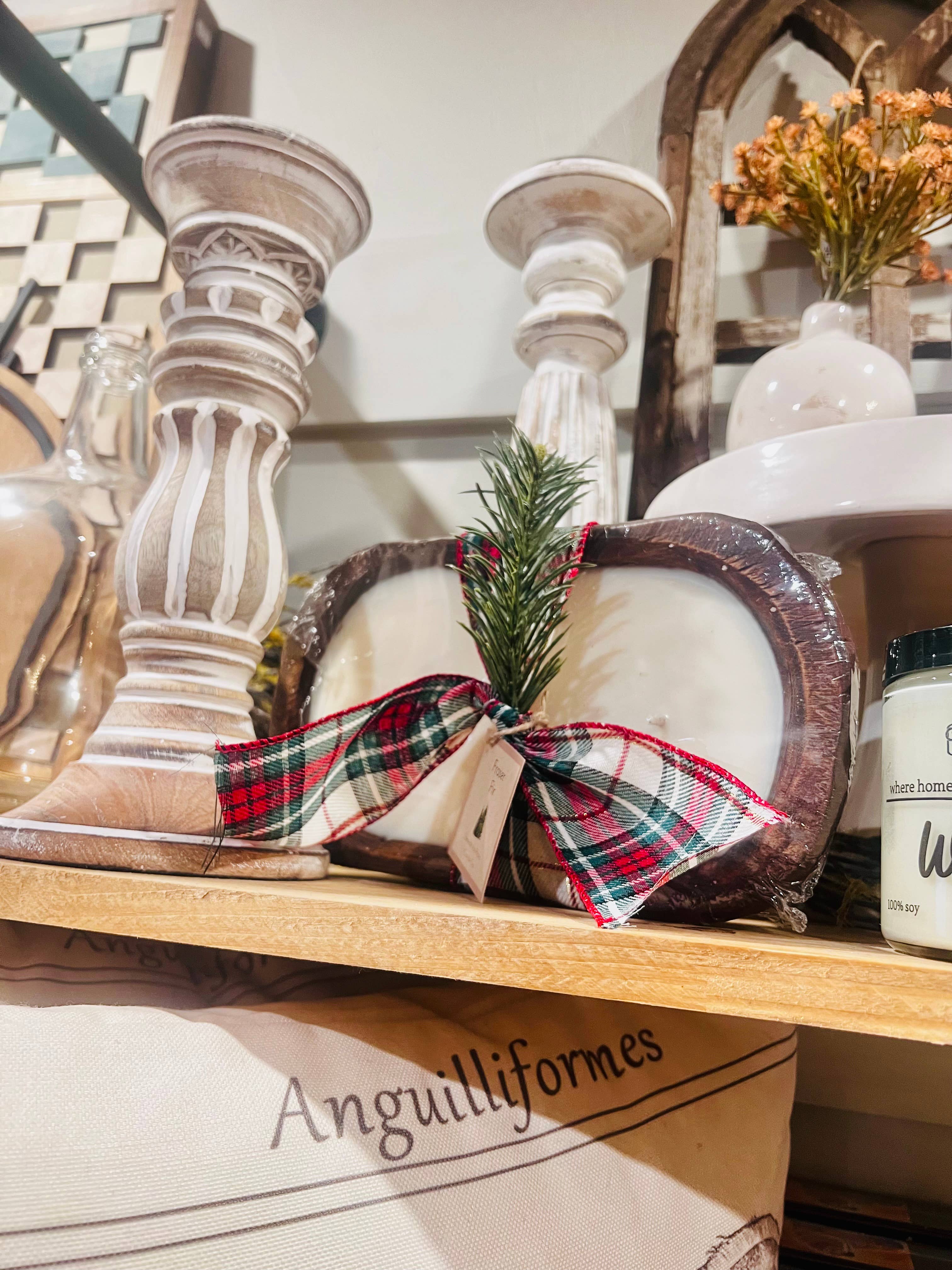 Each cheese mold is uniquely hand carved, meaning not one bowl looks exactly like the other. Each candle is approximately 6oz and is approximately 5" x 6", and approximately 2" high. This product is a great decor piece, even if you decide not to light it! Each cheese mold candle is made to order. Please allow up to two weeks for your order to ship when ordering. Due to the handmade nature of this product, each candle may vary from the picture shown. Please remember to follow the candle care instructions provided with your candle. While each bowl is treated with a fire retardant, we are not responsible if the wood catches fire. Trim each wooden wick prior to relighting.