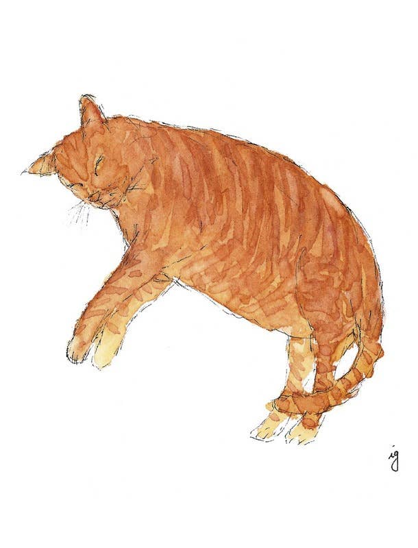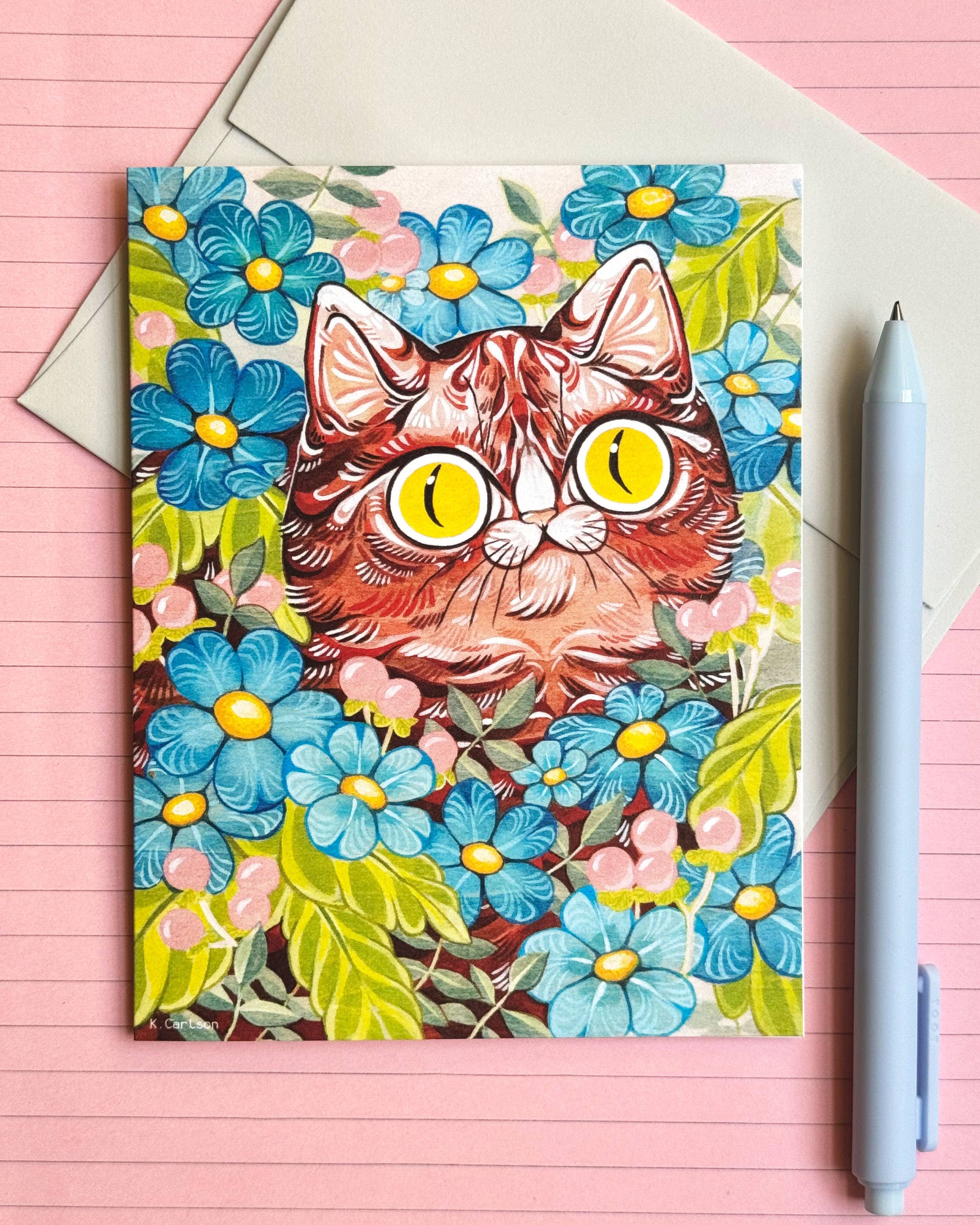 Digitally printed folded card, blank inside Size A2 (4-1/4" x 5-1/2") Image Description: a folded digitally printed card with a light colored background and striped pink cats covering the front All images, products and designs © Noteworthy Paper & Press