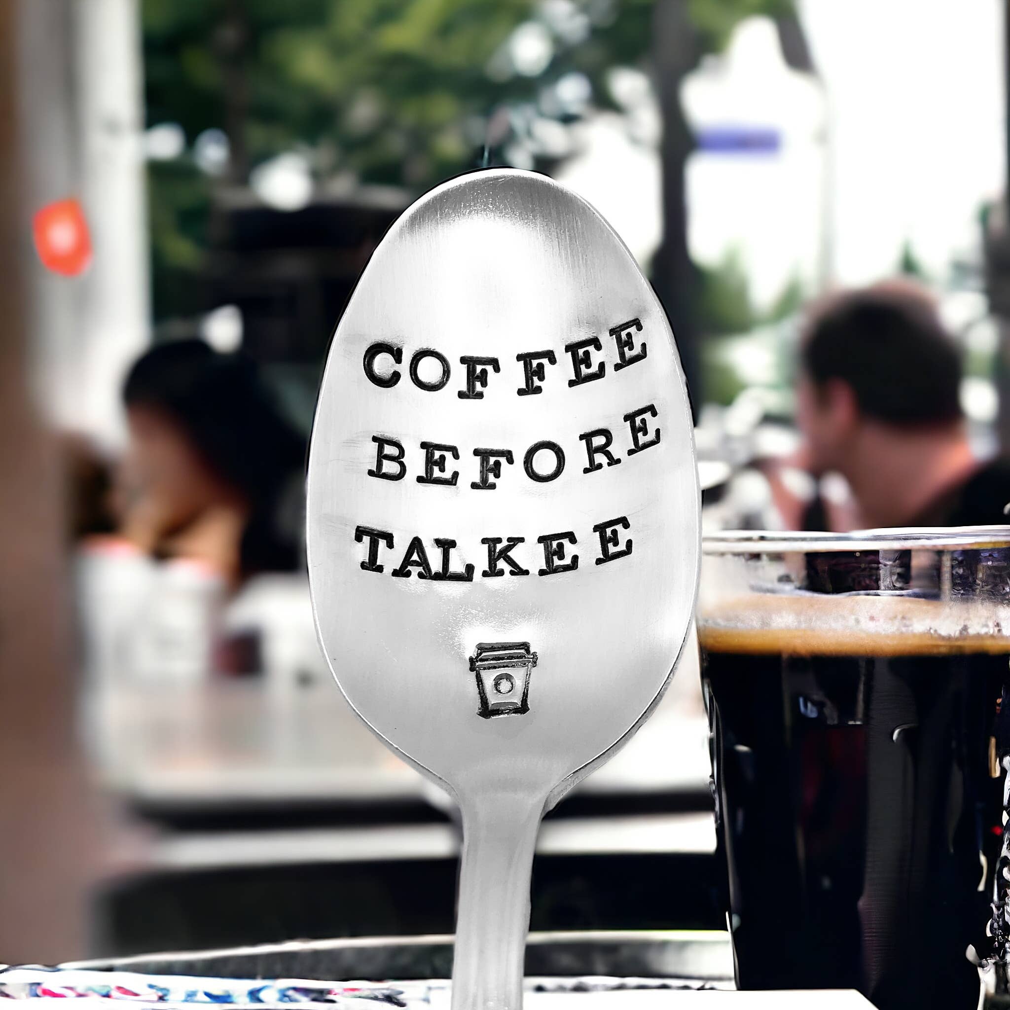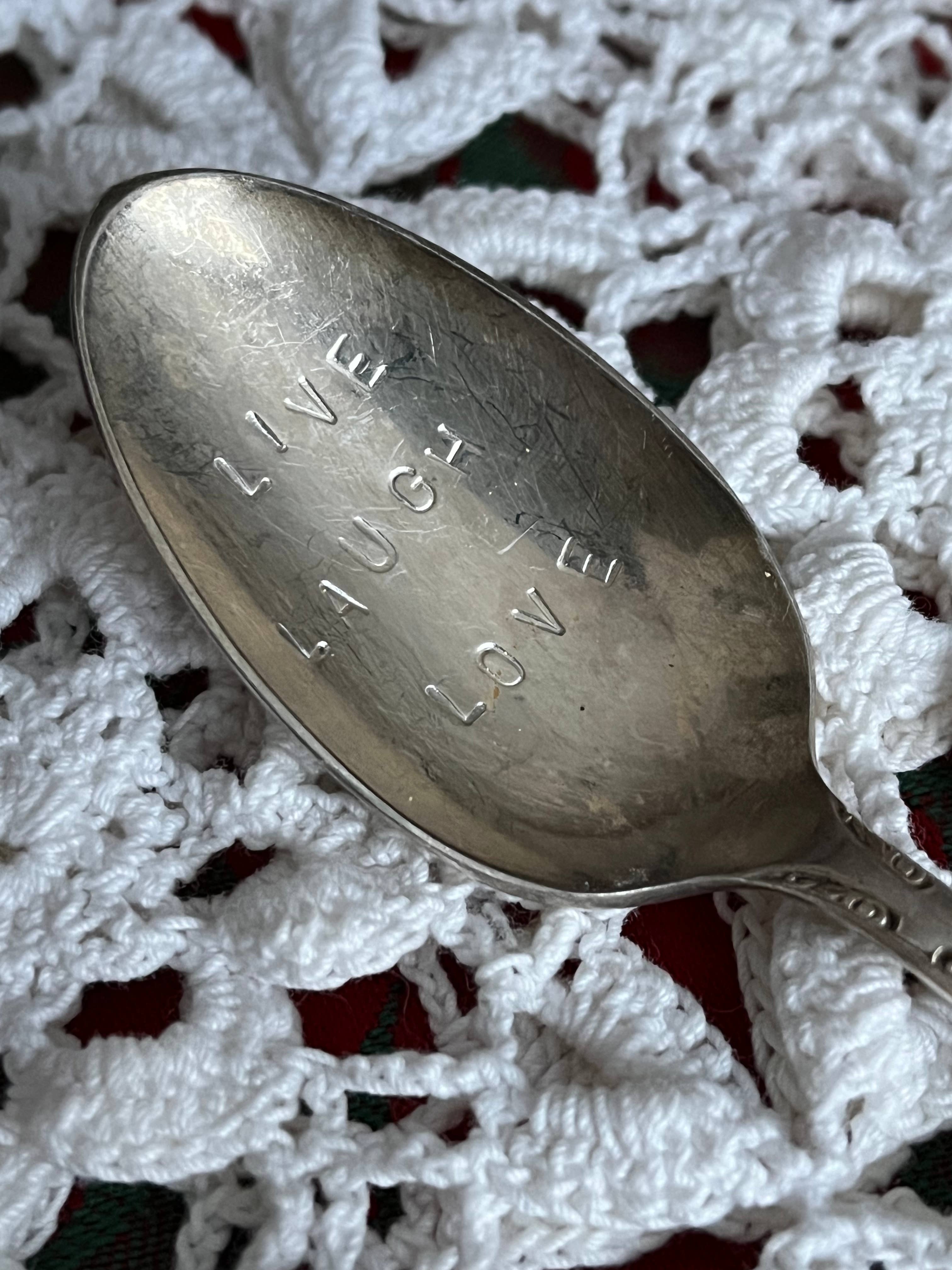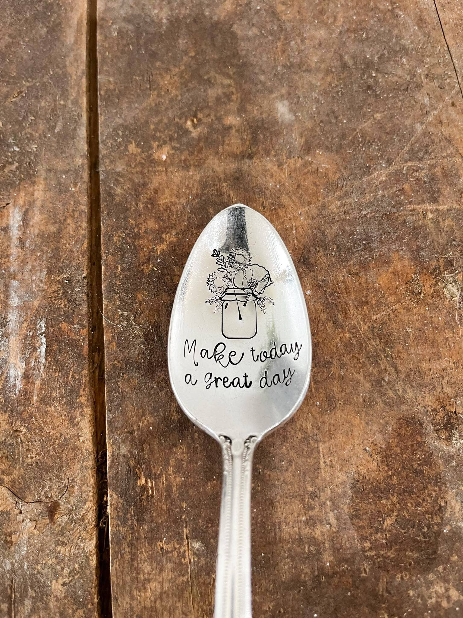 A selection of coffee themed teaspoons. Made from lovely vintage silver plated teaspoons. Spoons have a lovely patina of age and gentle use. Hand-stamped. Handle patterns will vary. Items come individually packaged and ready for gift giving.