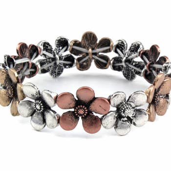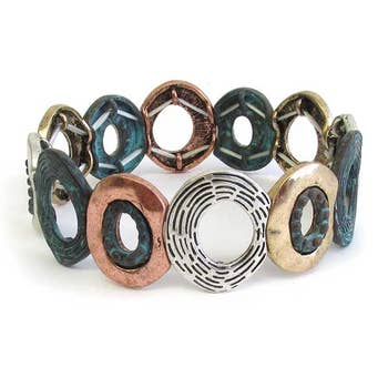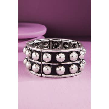 Burnished Silver Metal Stretch Bracelet.