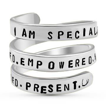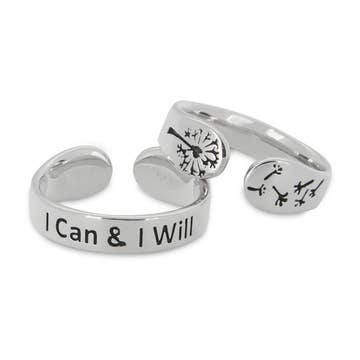 Inspirational ring “I Can & I Will” Made of sterling silver Adjustable fit - suitable for ring sizes 7.5 – 10 Sold individually