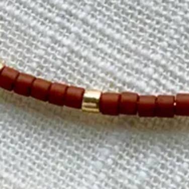 New colors in a beloved and timeless design. This thin and delicate necklace is understated and can accompany any outfit. It's also great for layering. A customer favorite! High quality Japanese seed beads hand-strung on thin gold chain. 16 inches long. Spring ring clasp. Choose between Gold Plated or Gold Filled materials. What's the difference? Gold filled materials contain 100x more real gold than the gold plated option and are very durable, tarnish resistant and will last for years.