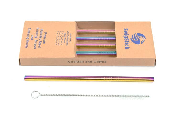 SwigStick by Blu Kabu 4 Pack 4-Multi-Colored 2-10.5" long, 0.24" diameter 2-10.5" long, 0.31" diameter 304 Stainless Steel